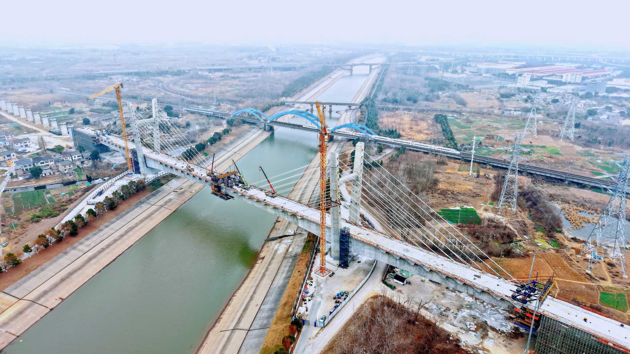 ??1月18日,中國中鐵旗下中鐵上海局參建的滬寧合高鐵南京段重點控制性工程——六合特大橋跨馬汊河斜拉橋合龍。