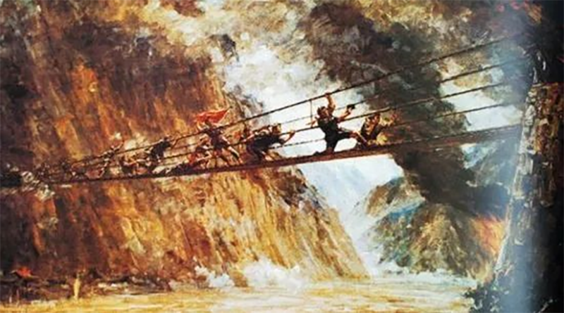 1934年10月到1936年10月,中國工農紅軍在中國共產黨的領導下,進行了震驚世界的二萬五千里長征。面對國民黨軍隊的圍追堵截,紅一方面軍沖破封鎖線、血戰湘江、突破烏江、四渡赤水、巧渡金沙江、強渡大渡河、飛奪瀘定橋、翻越大雪山、涉越水草地、奇襲臘子口,于1935年10月與陜北紅軍勝利會師。在這些事跡中,尤以飛奪瀘定橋最為出名。